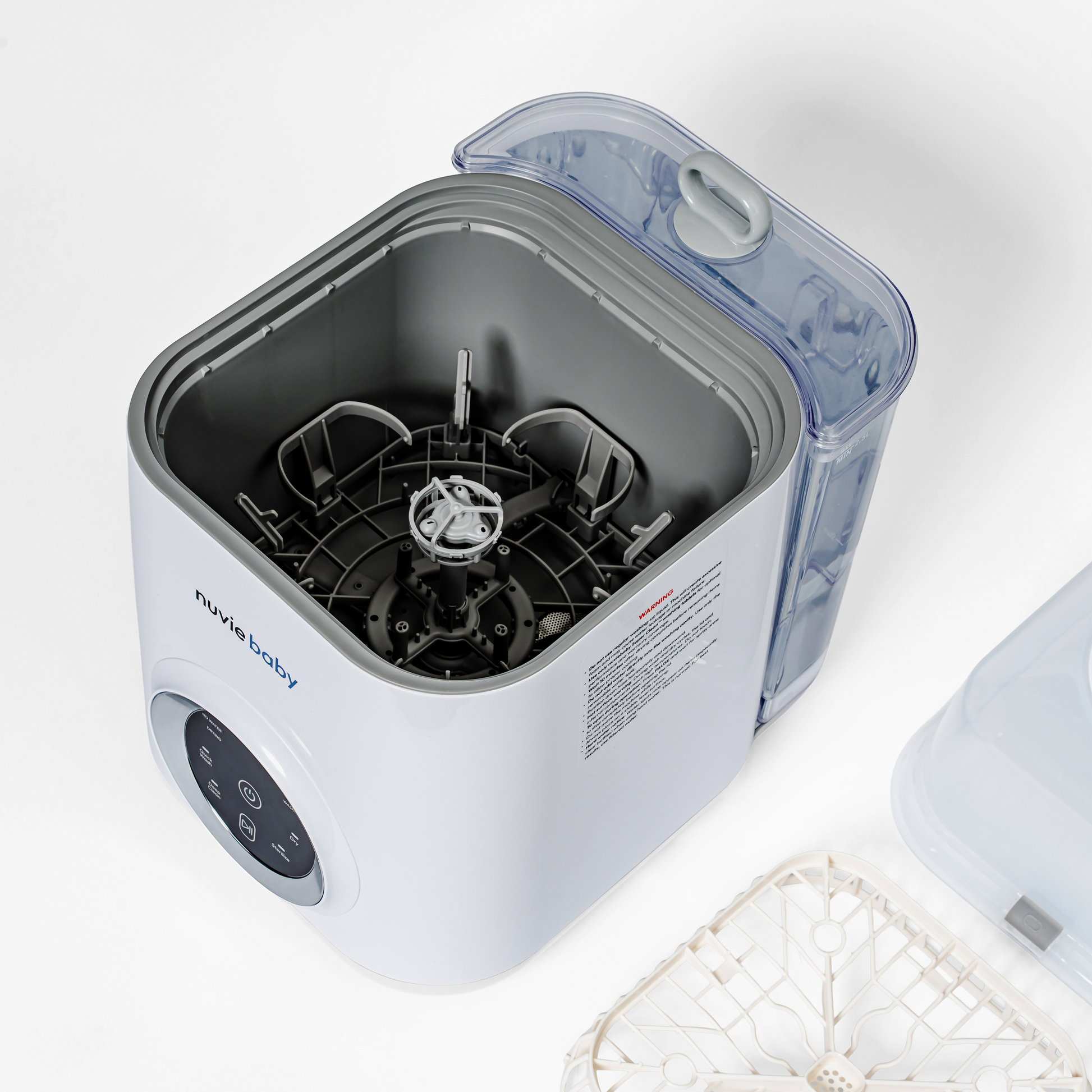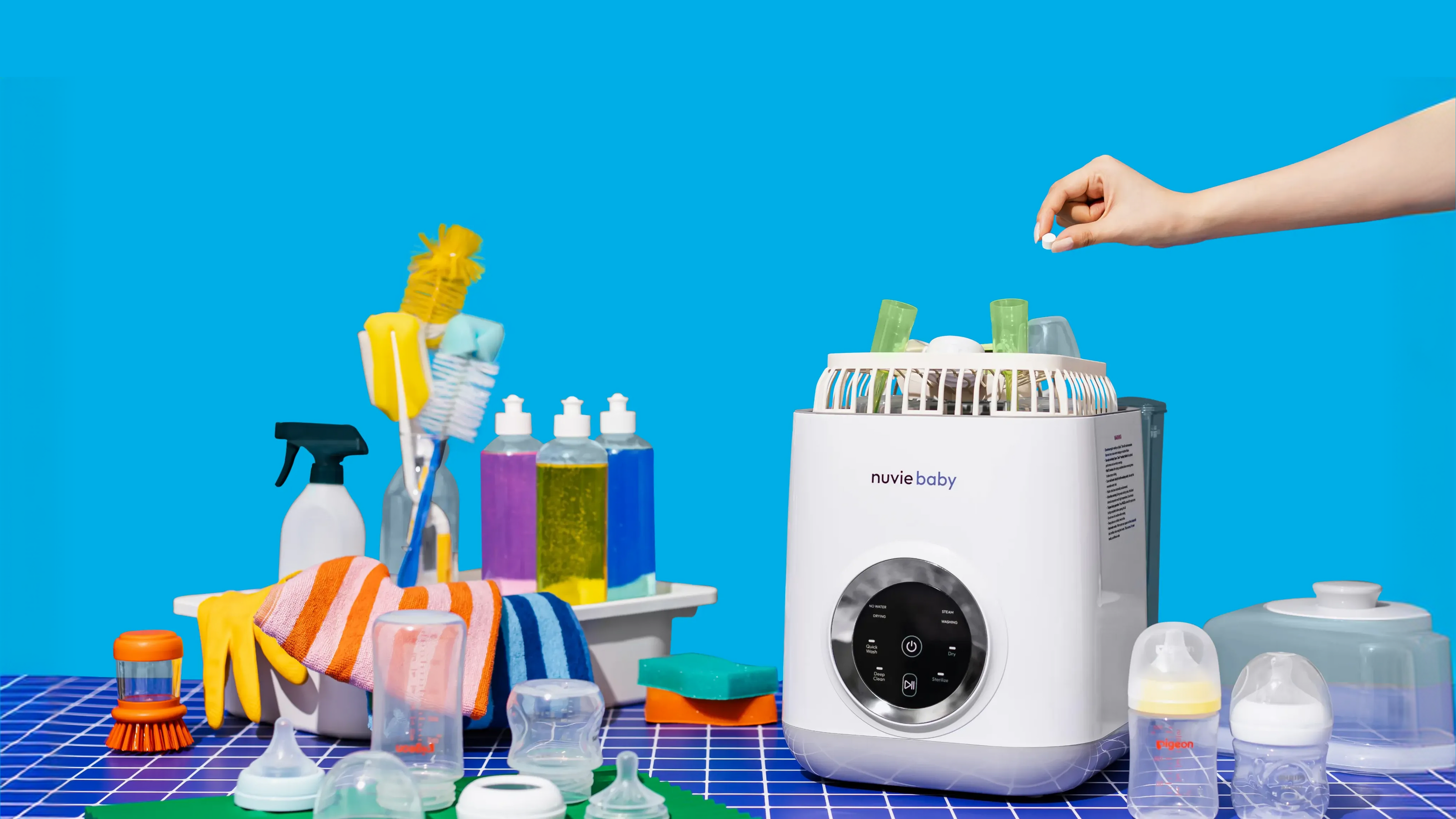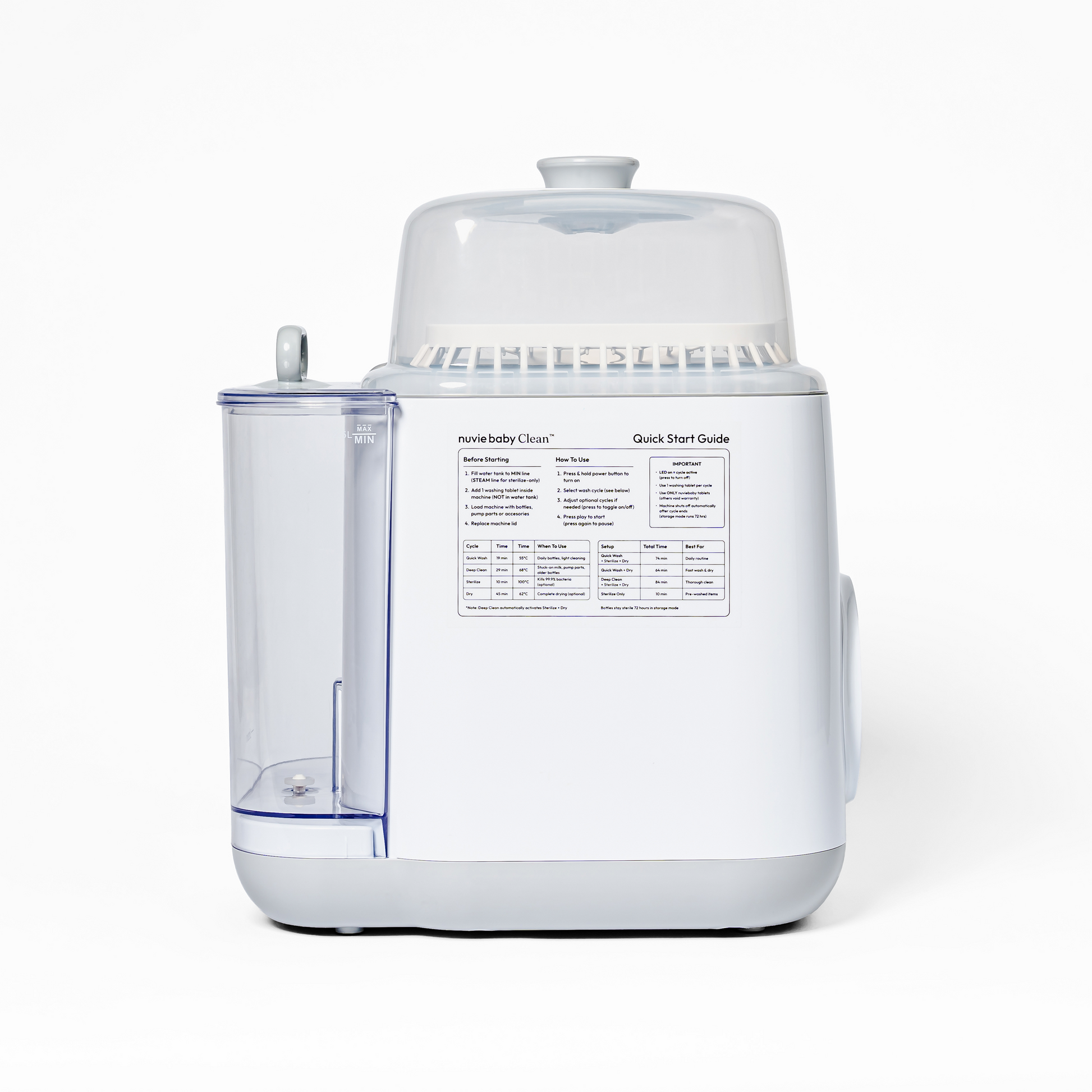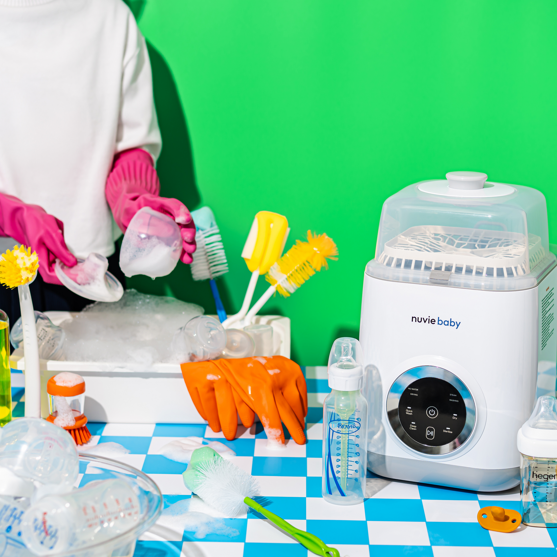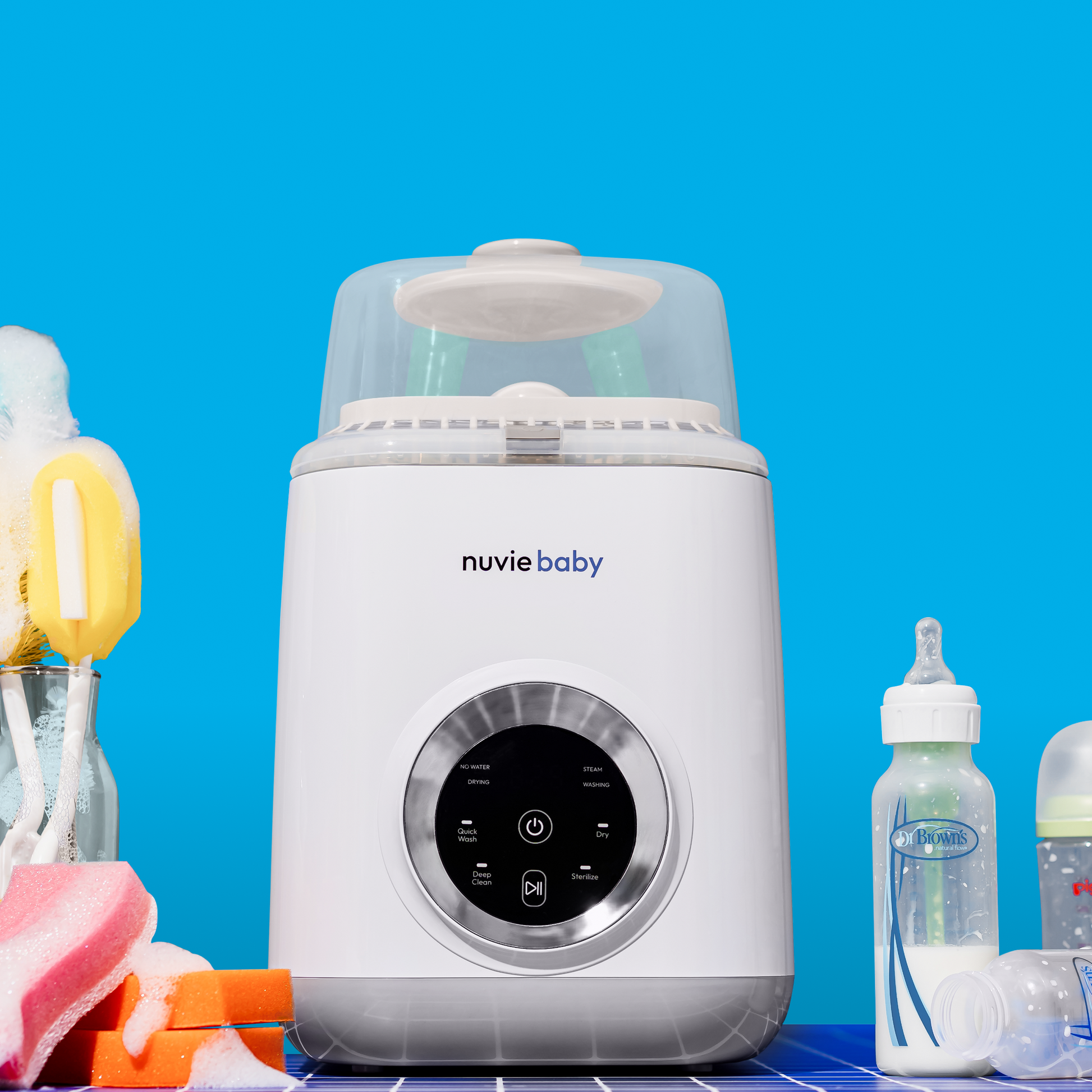 nuviebaby Clean™ is the smarter way to handle baby bottle cleaning. This 4-in-1 countertop appliance automatically washes, sterilizes, dries, and stores up to 8 bottles or a full set of pump parts, saving you over an hour each day - all without lifting a finger. With 9 customizable cleaning modes, steam sterilization and compatibility with all bottles and pump styles (including wearables), it's the shortcut every parent needs.