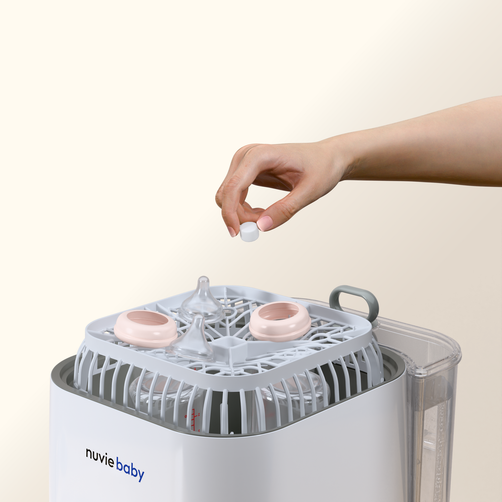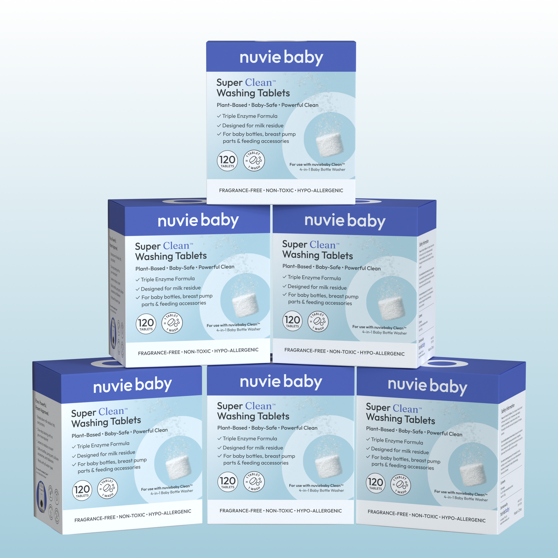 Simplify your first year with baby. This all-in-one bundle includes our best-selling nuviebaby Clean™ bottle washer, a full year’s supply of Super Clean™ washing tablets, and HEPA 13 filters to keep every wash hygienic and hassle-free. No guesswork. No reordering. No risk of running out.