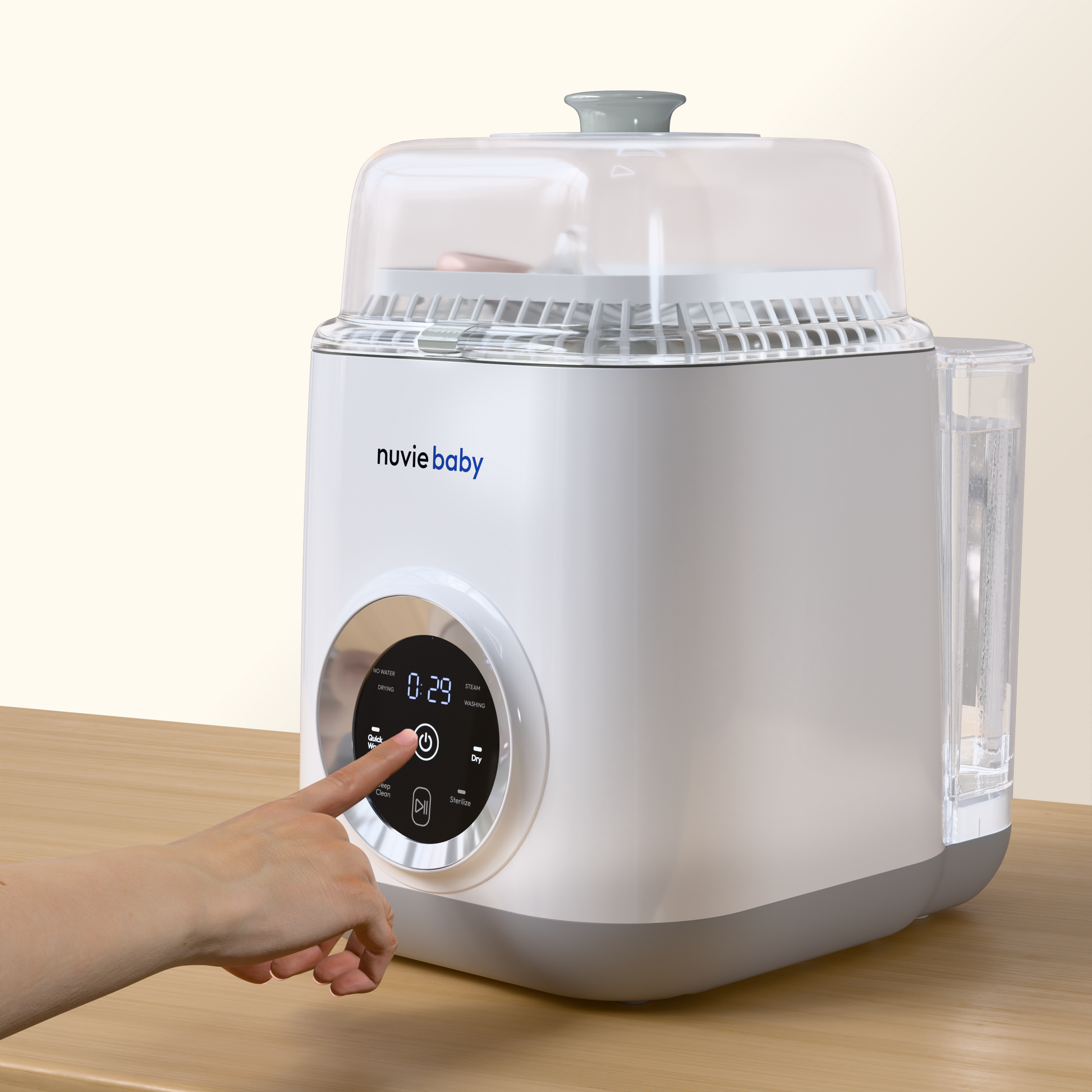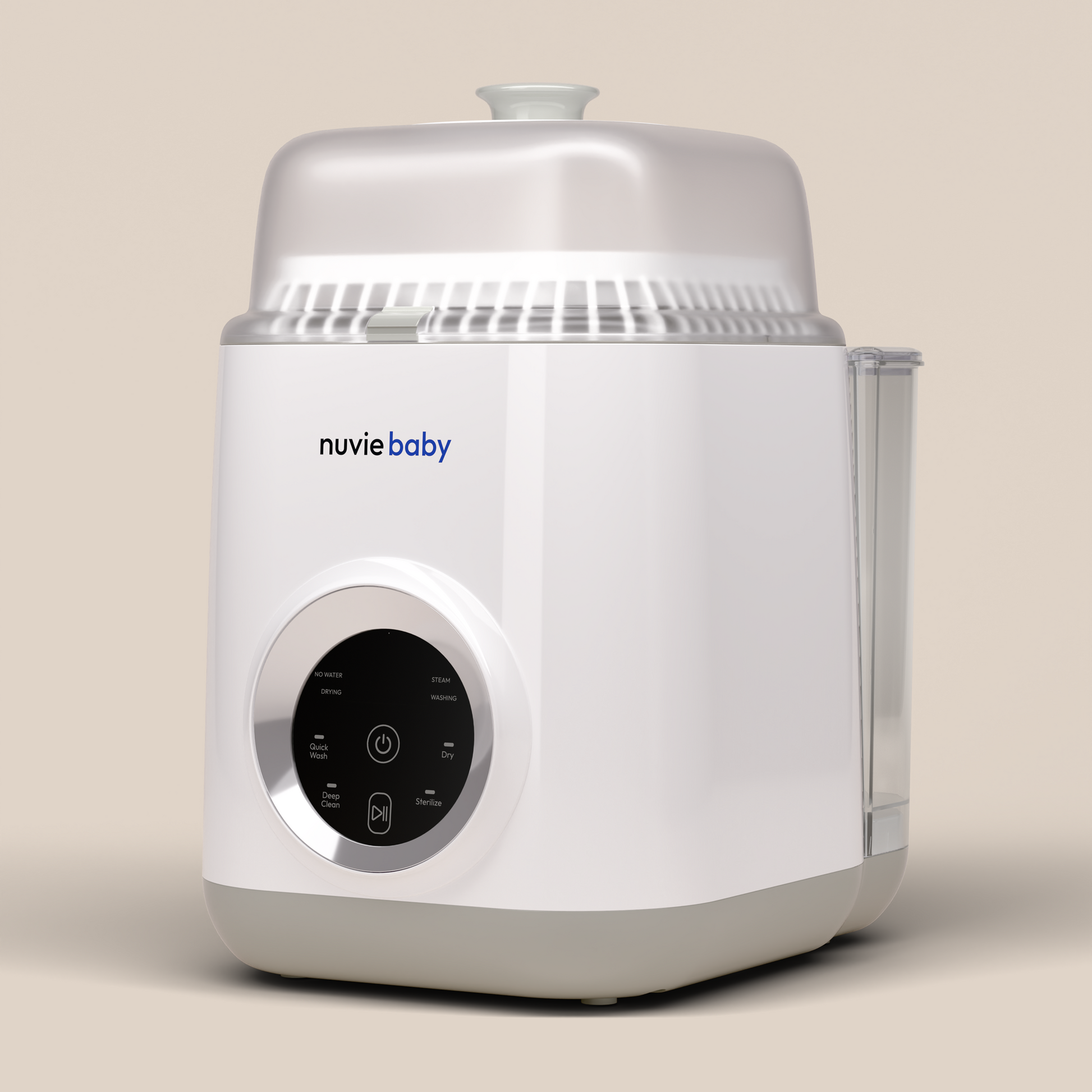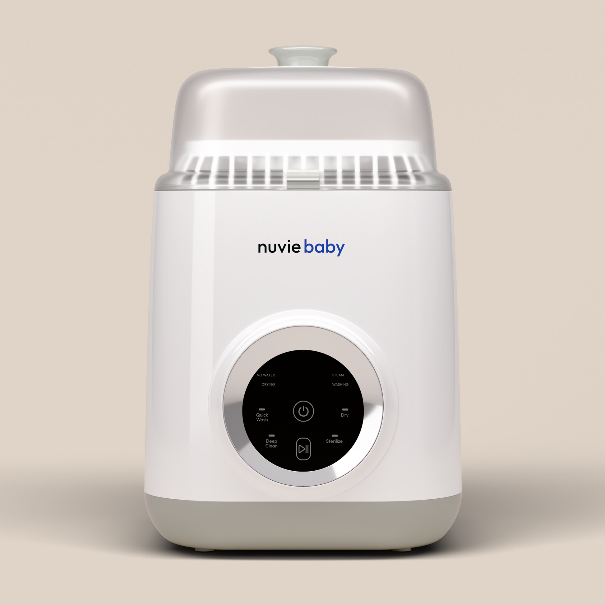nuviebaby Clean™ is the smarter way to handle baby bottle cleaning. This 4-in-1 countertop appliance automatically washes, sterilizes, dries, and stores up to 8 bottles or a full set of pump parts, saving you over an hour each day - all without lifting a finger. With 9 customizable cleaning modes, steam sterilization and compatibility with all bottles and pump styles (including wearables), it's the shortcut every parent needs.