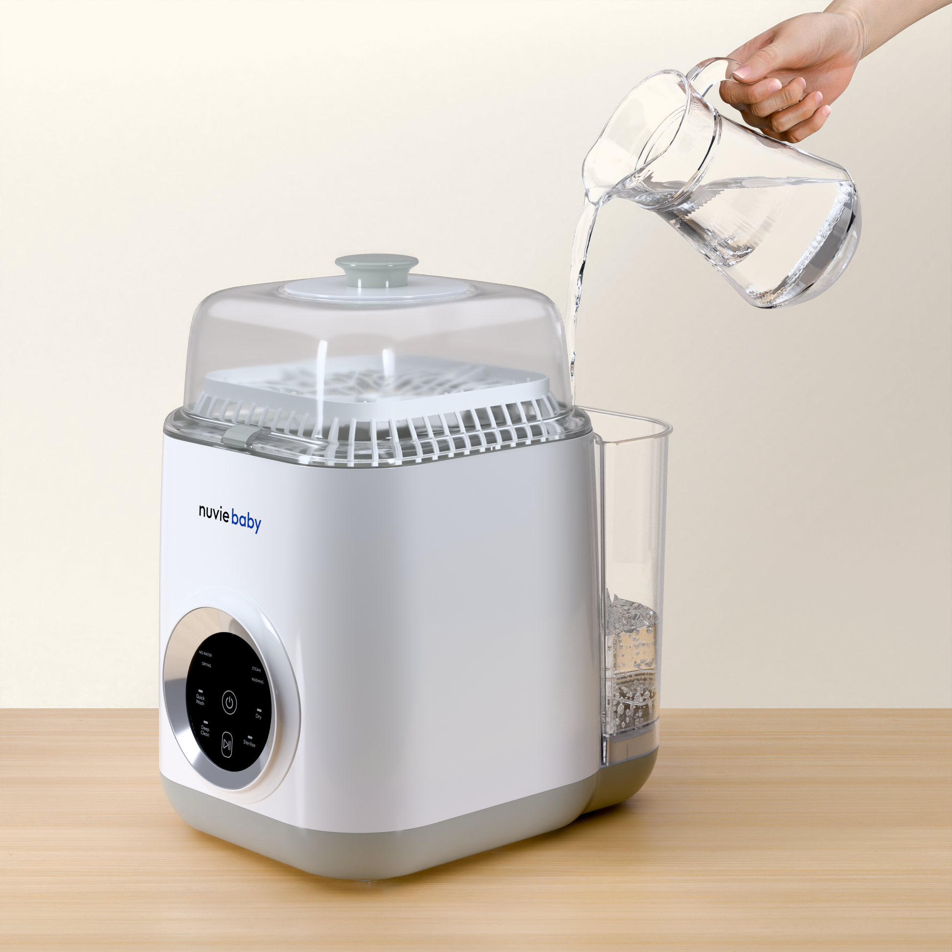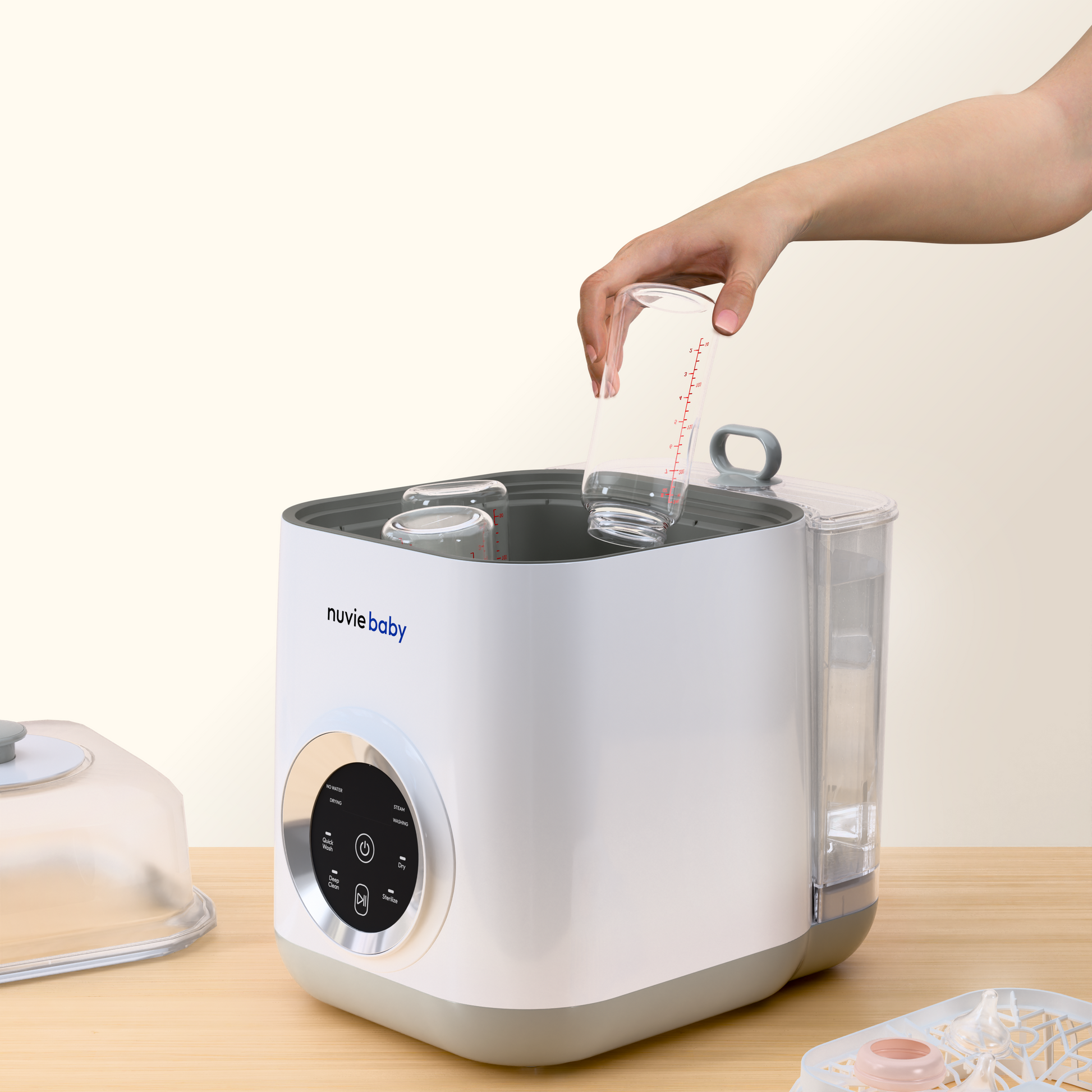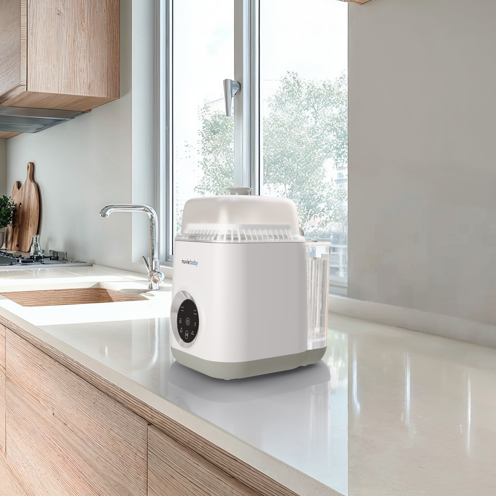 nuviebaby Clean™ is the smarter way to handle baby bottle cleaning. This 4-in-1 countertop appliance automatically washes, sterilizes, dries, and stores up to 8 bottles or a full set of pump parts, saving you over an hour each day - all without lifting a finger. With 9 customizable cleaning modes, steam sterilization and compatibility with all bottles and pump styles (including wearables), it's the shortcut every parent needs.